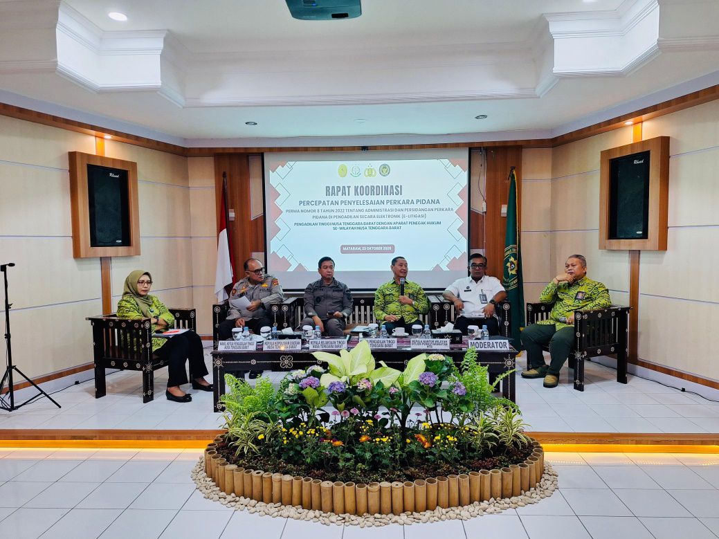Mataram - Sebagai upaya percepatan penyelesaian perkara pidana, peningkatan sinergitas dan efektifitas kerja antar instansi penegak hukum, Pengadilan Tinggi (PT) Nusa Tenggara Barat (NTB) menyelenggarakan kegiatan Rapat Koordinasi Percepatan Penyelesaian Perkara Pidana, pada Kamis (23/10/2025).