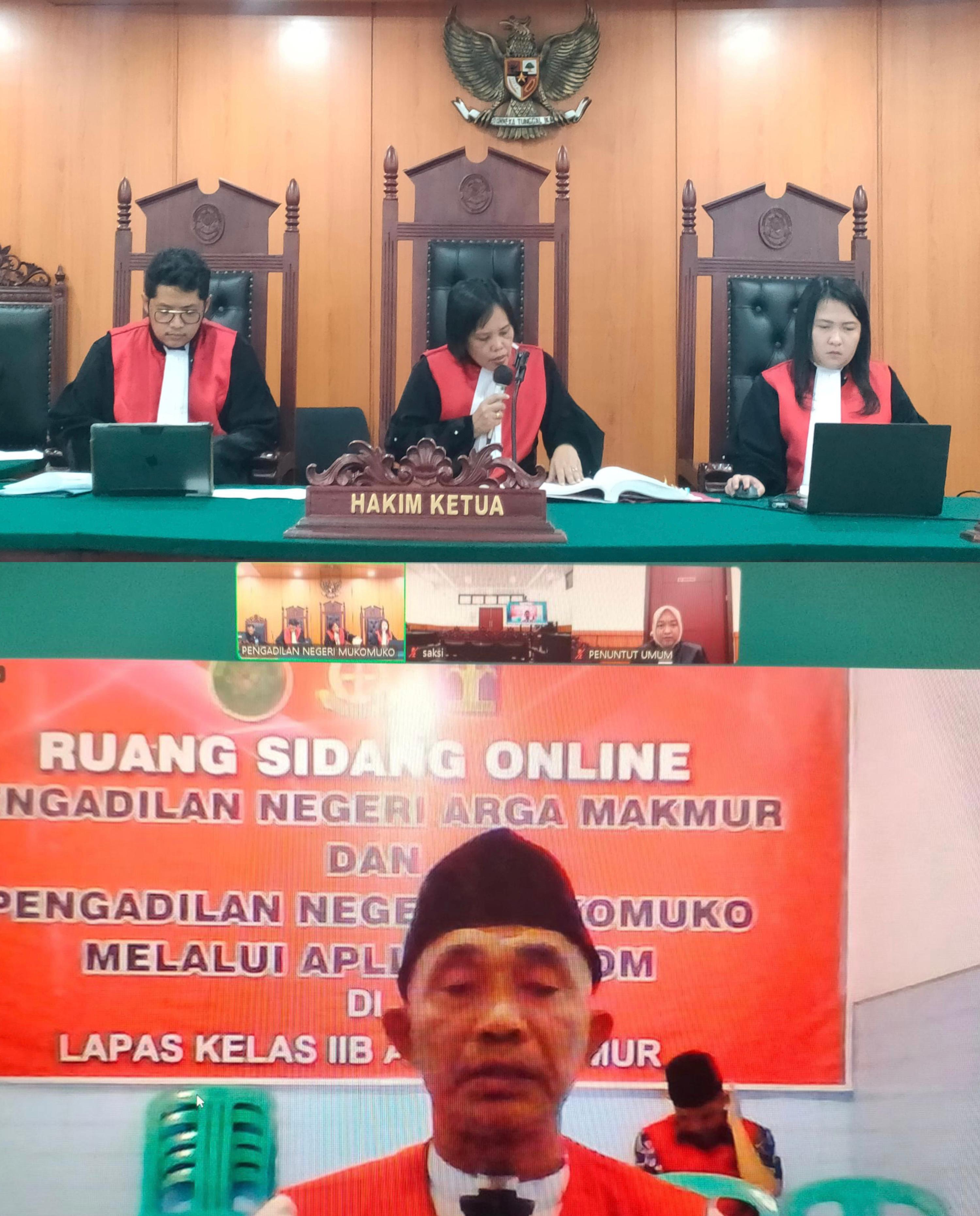 Sidang pembacaan putusan ini dilakukan secara video conference, dengan terdakwa mengikuti jalannya sidang dari Lembaga Pemasyarakatan (Lapas) Arga Makmur Kelas IIB, sementara Majelis Hakim, Jaksa Penuntut Umum, dan penasihat hukum berada di ruang sidang pengadilan.
