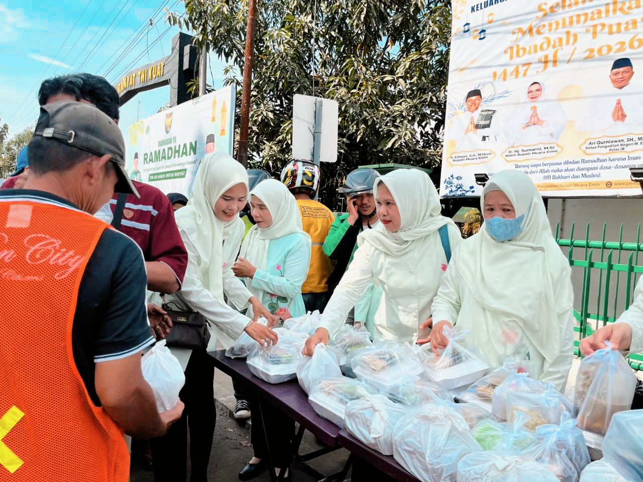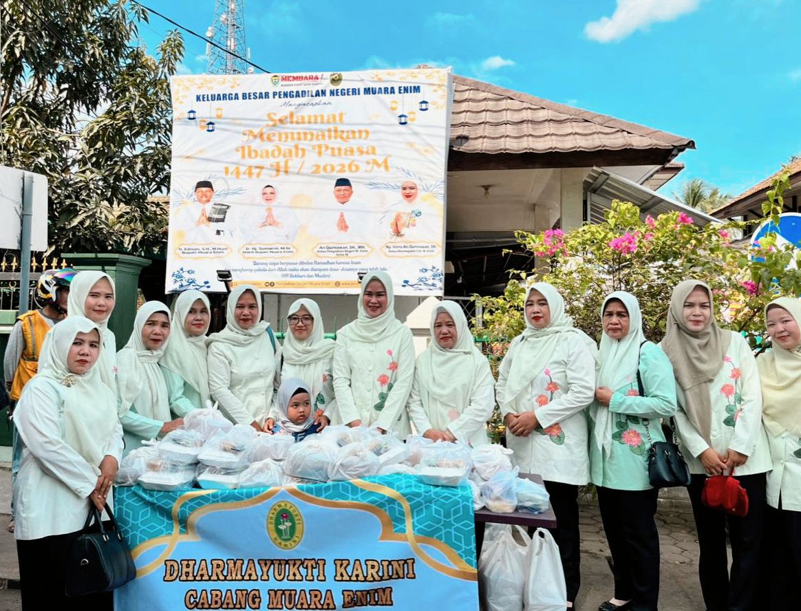 Muara Enim - Menyemarakan bulan Ramadhan, Dharmayukti Karini (DYK) Cabang Muara Enim menggelar kegiatan Berbagi Takjil pada Kamis (05/03/2026), di halaman depan kantor Pengadilan Negeri (PN) Muara Enim.