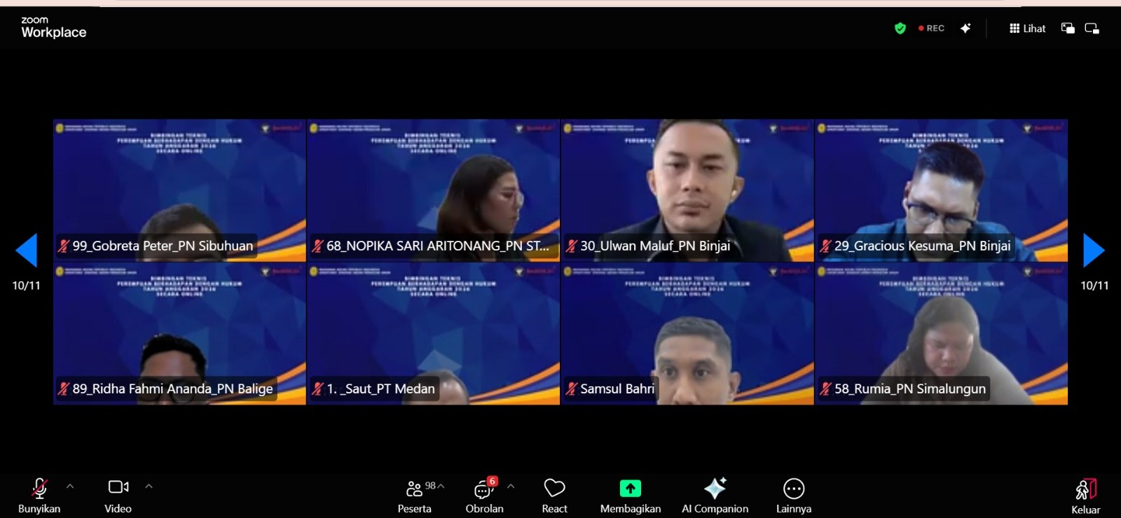 Jakarta. Direktur Jenderal Badan Peradilan Umum Bambang Myanto secara resmi membuka kegiatan Bimbingan Teknis (Bimtek) Perempuan Berhadapan dengan Hukum (PBH) yang dilaksanakan di Command Center Ditjen Badilum dan diikuti secara daring oleh peserta dari wilayah hukum Pengadilan Tinggi Medan, Selasa (28/4).