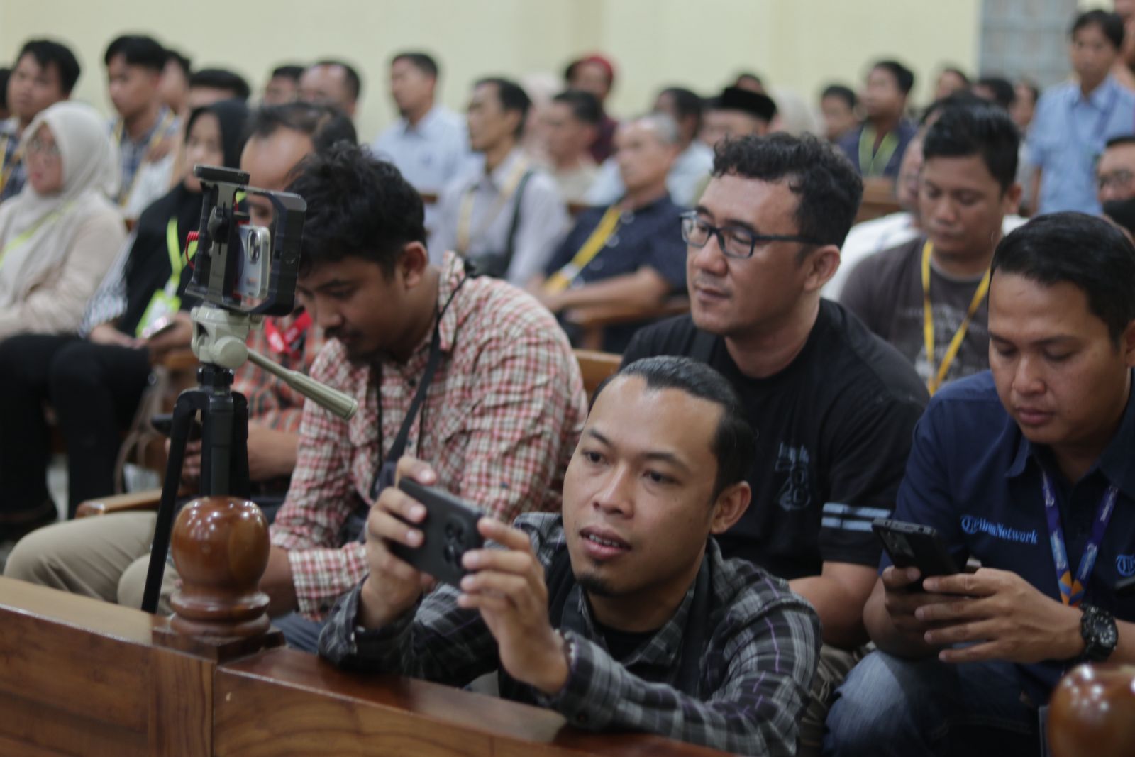 Sejumlah jurnalis dari berbagai media massa mengikuti jalannya sidang dakwaan dengan tertib.