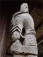 visual, Patung ini selalu memperlihatkan Sangkalon menjepit atau memegang figur