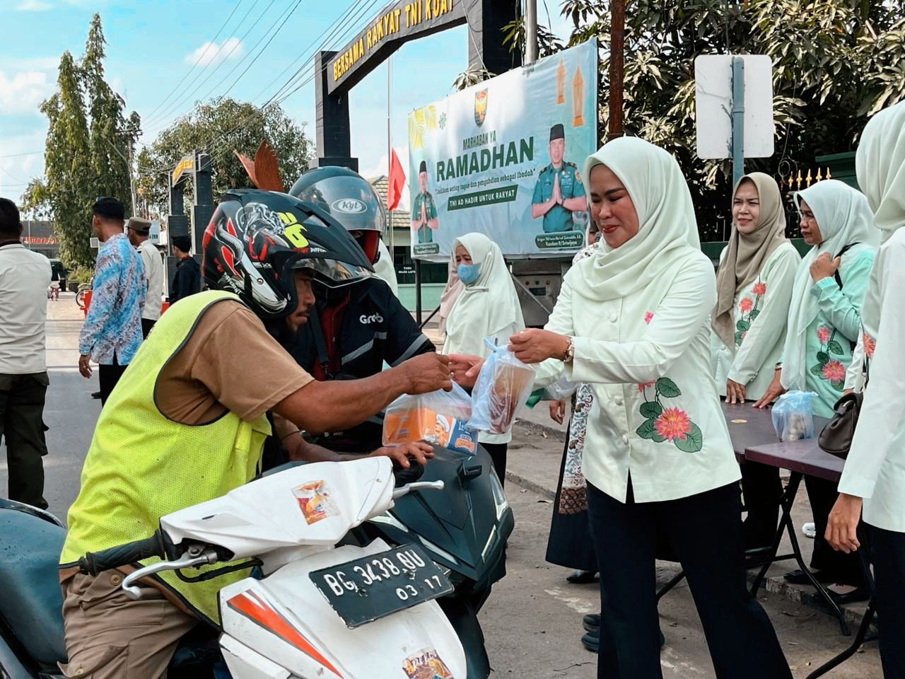 Nampak anggota DYK Cabang Muara Enim turut aktif membagikan paket takjil kepada para pengendara dan masyarakat yang melintas di depan kantor pengadilan.